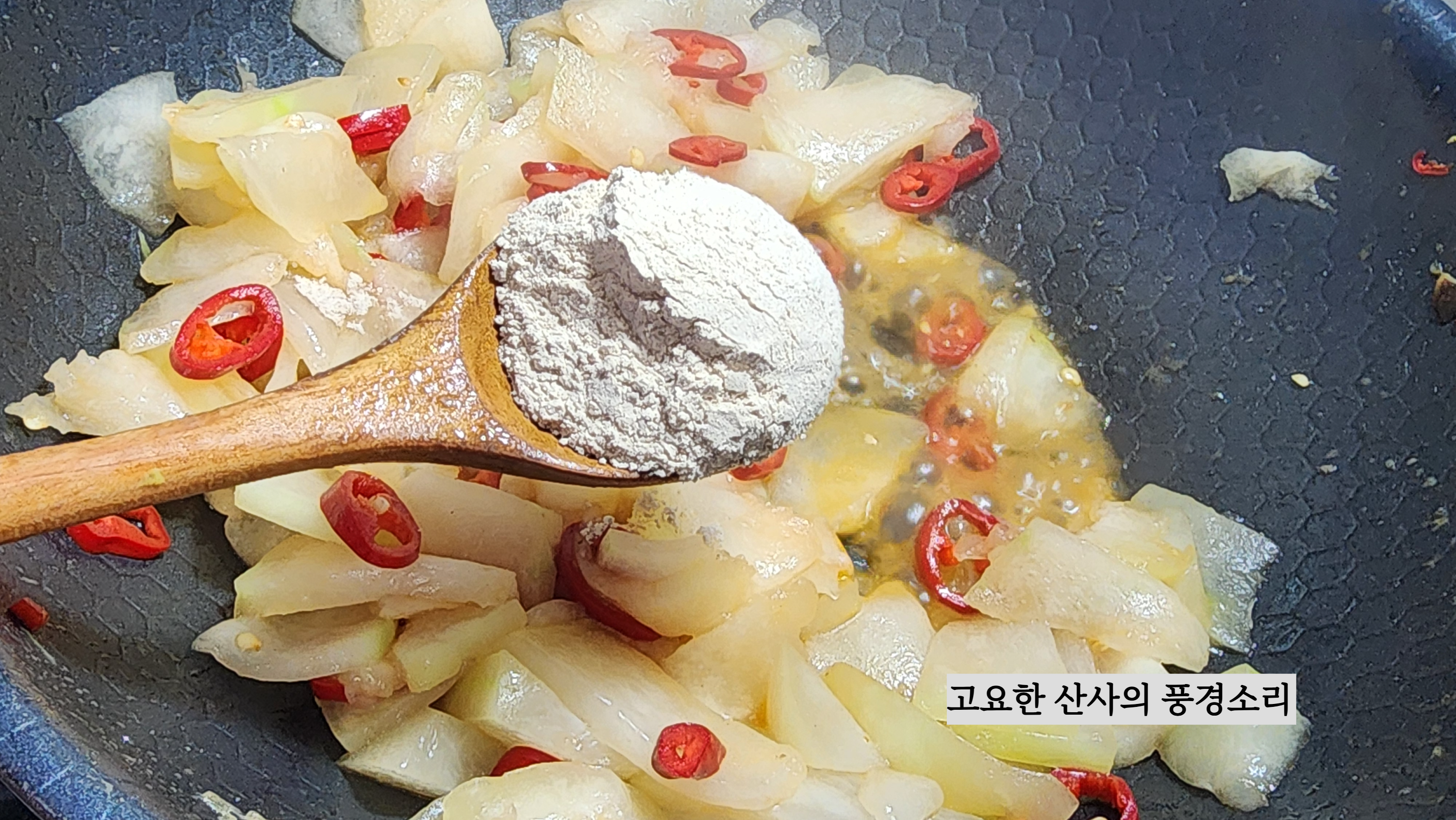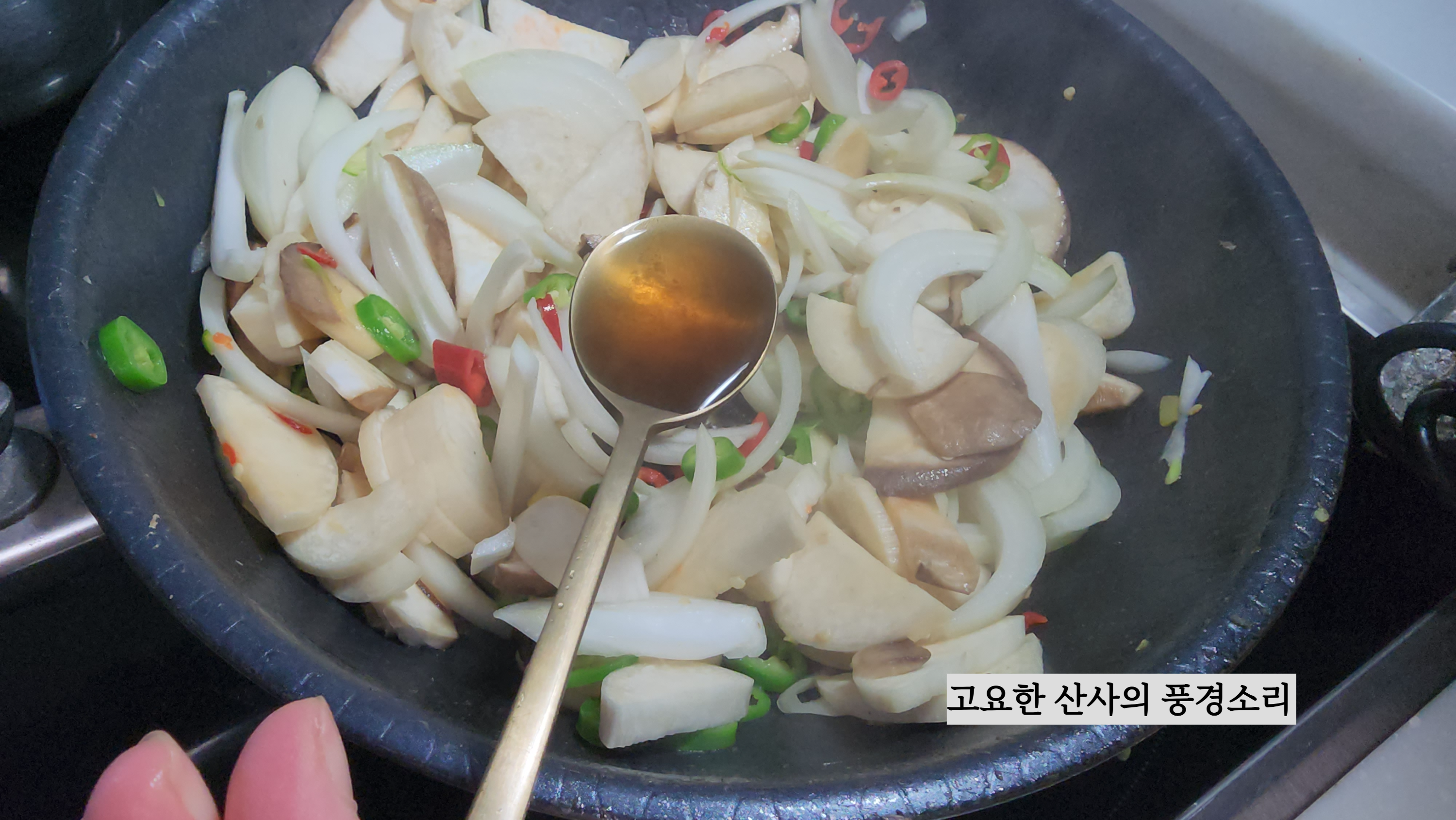 ㉡ 액젓, 육수, 표고가루를 넣고 볶아준다.