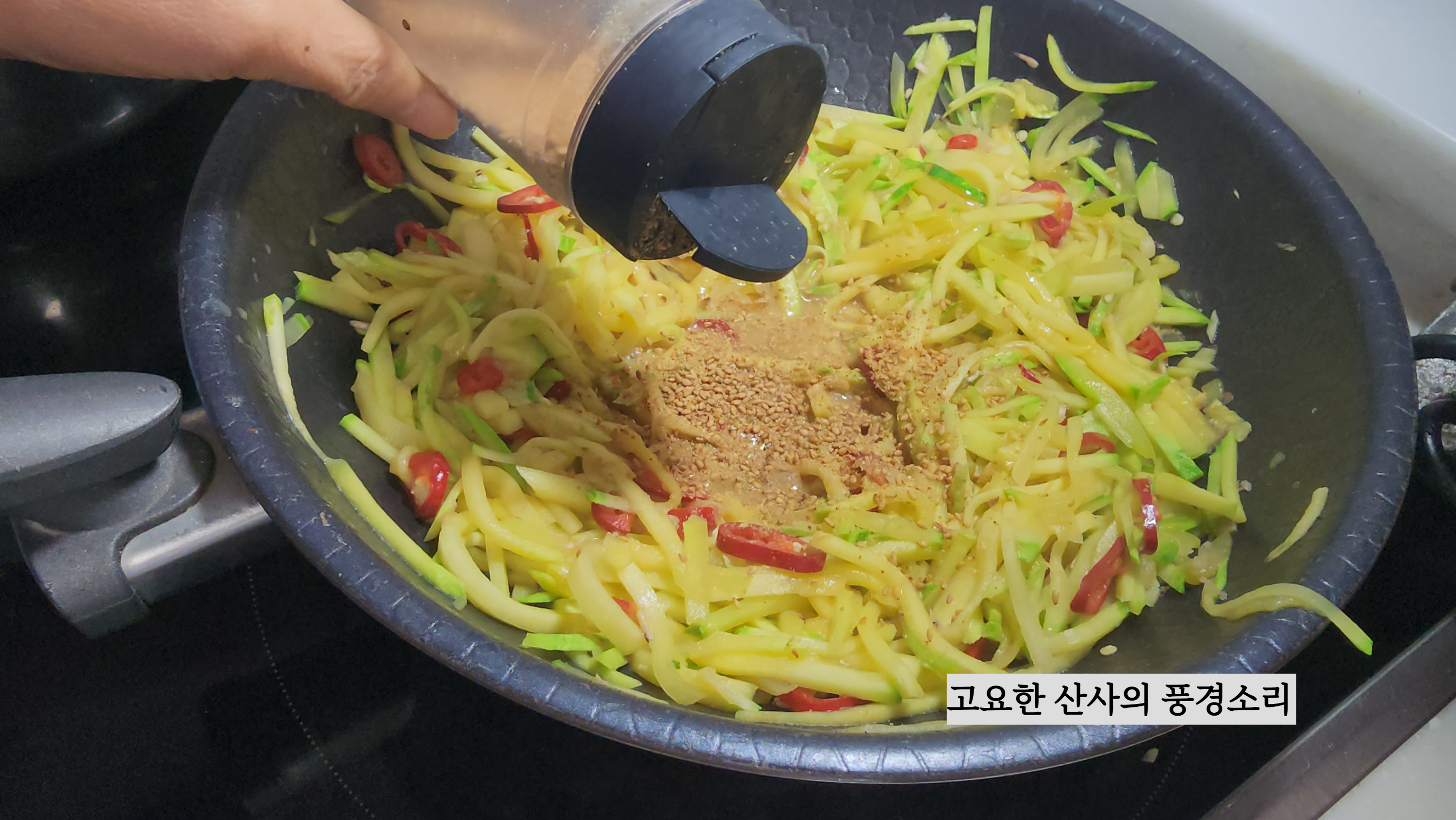 ㉣ 참기름, 깨소금을 넣고 마무리한다.