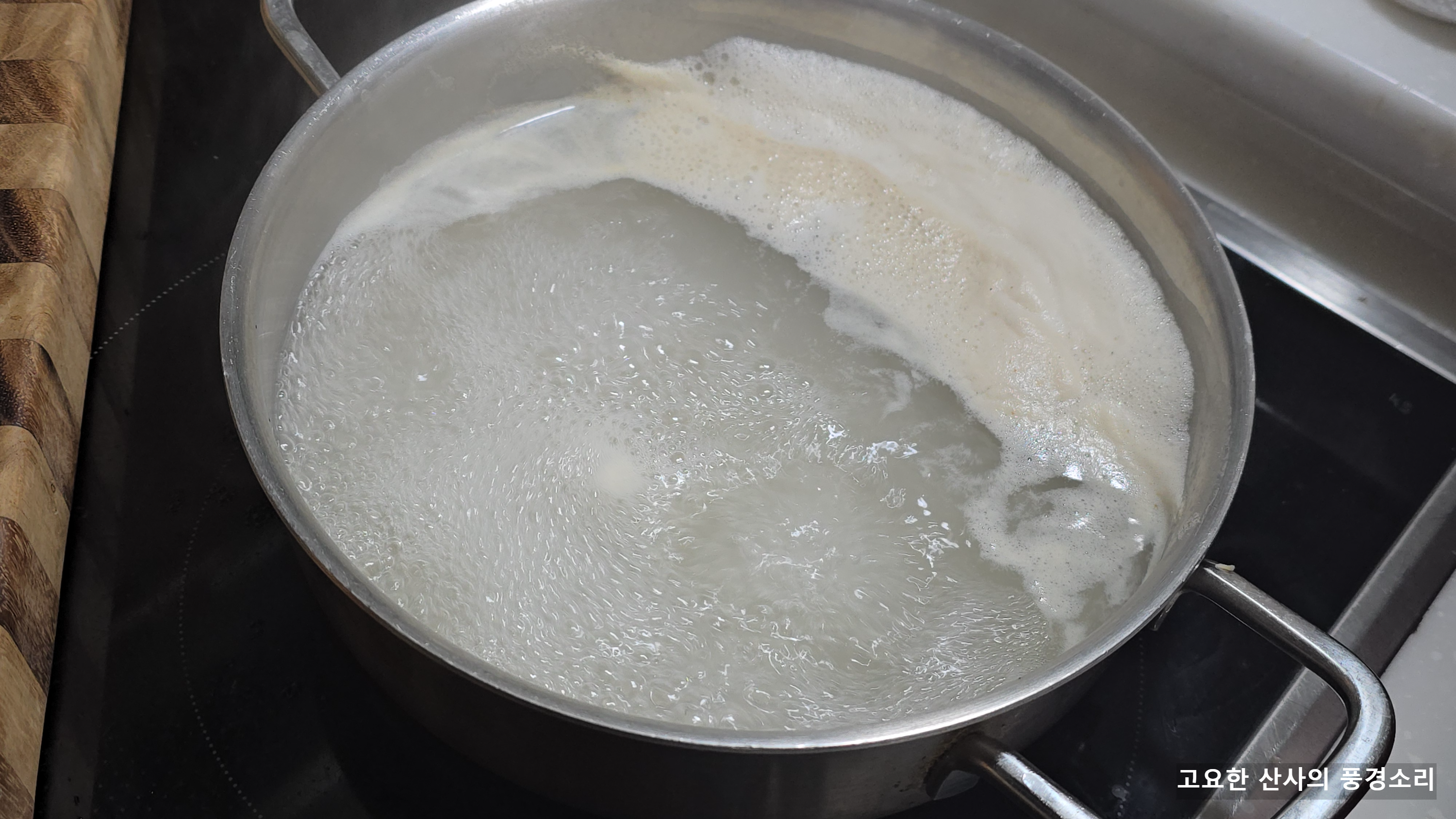 ㉠ 쌀뜨물, 동전육수를 넣고 끓여준다.