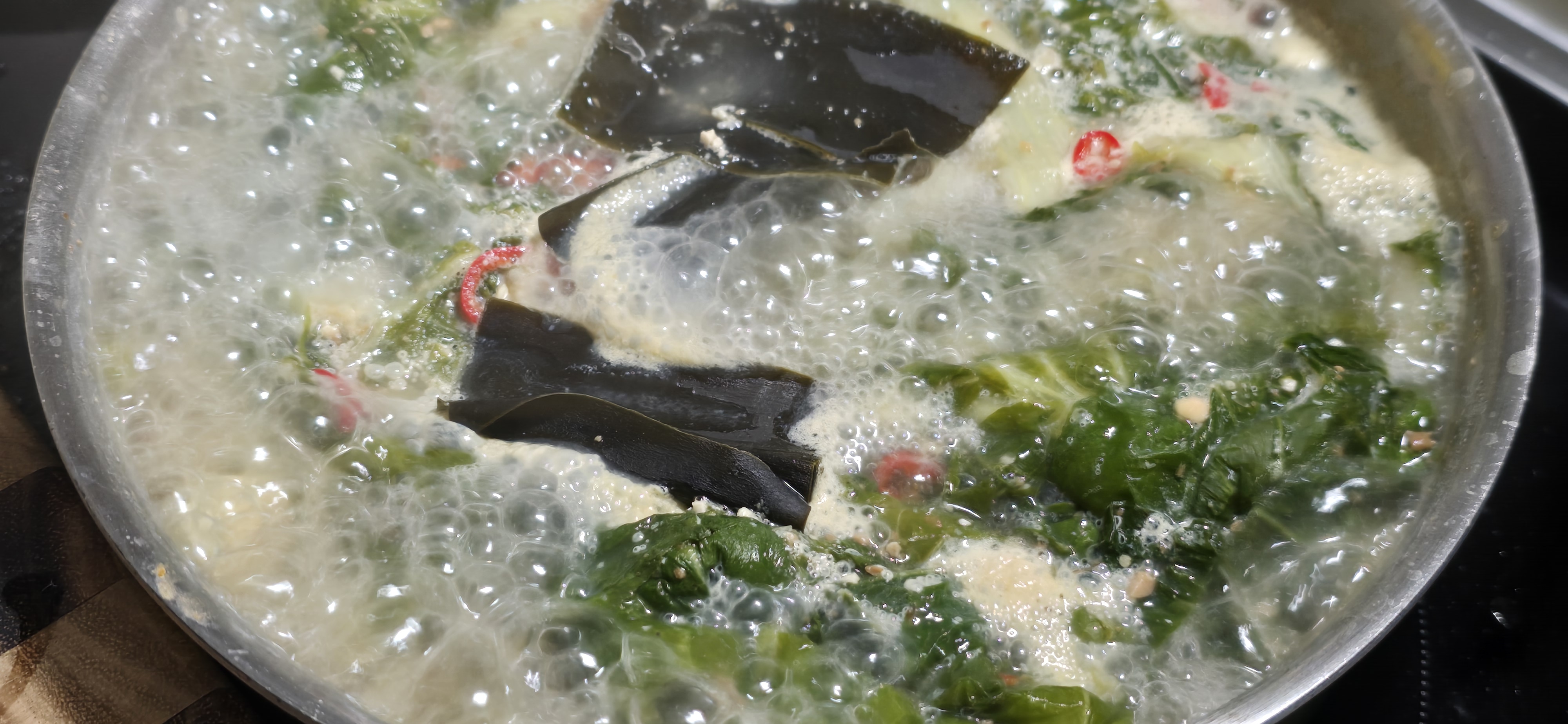 → Adjust the seasoning with salt, then add minced garlic and green onion.