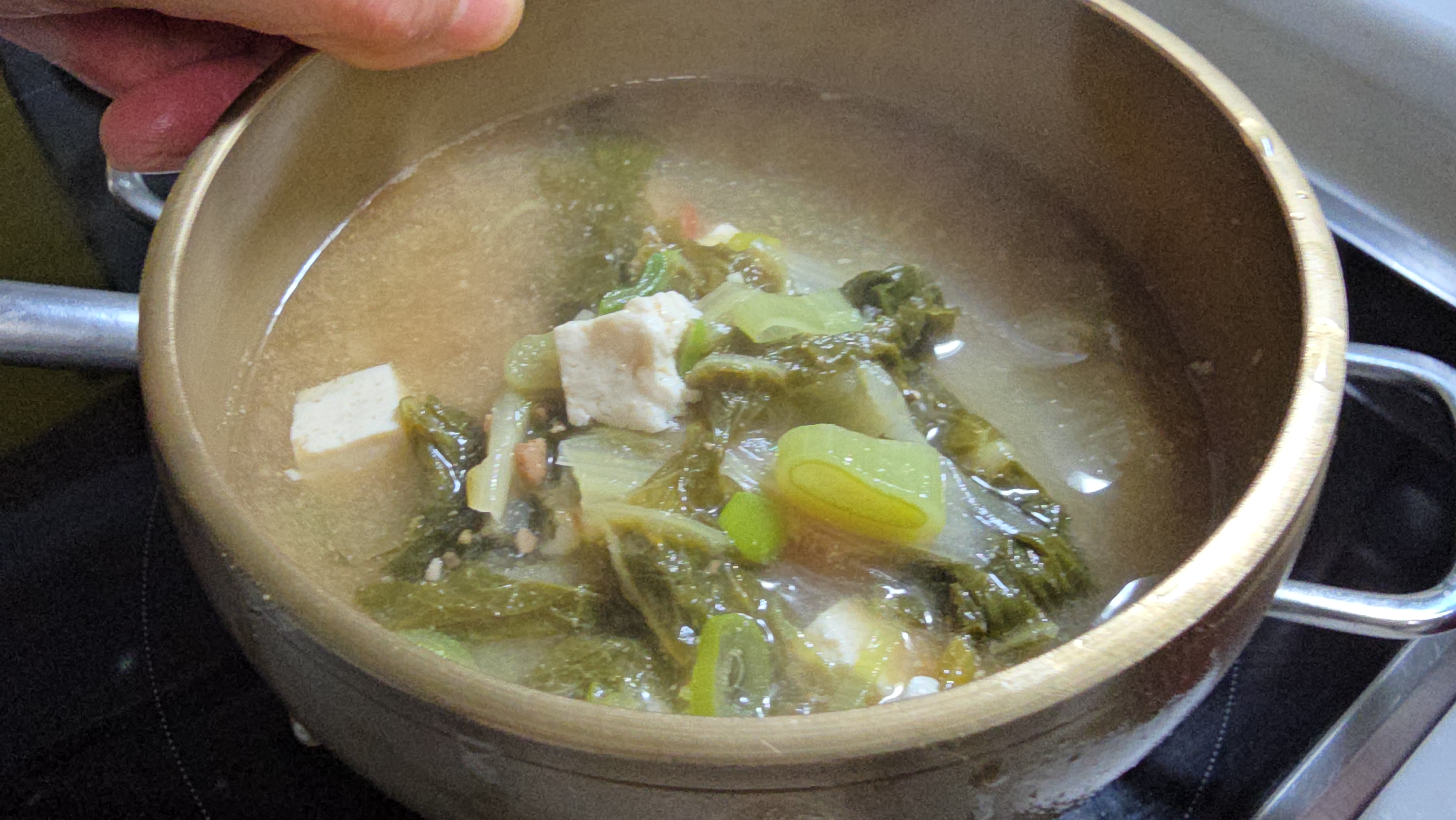 ㉤ 모자란 간은 소금으로 맞추고 마늘과 대파를 넣는다.
