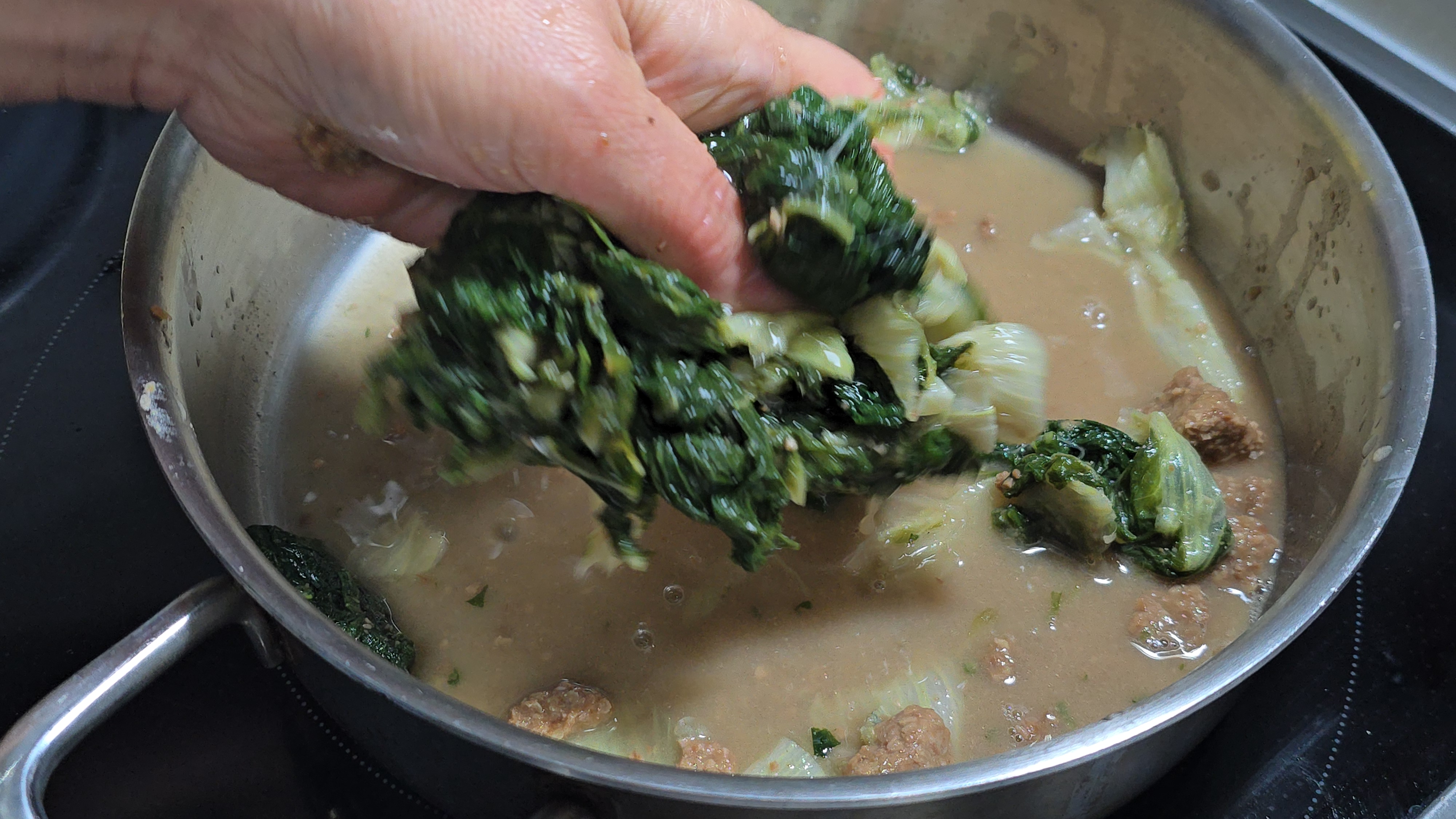 → Thaw the dried cabbage leaves, cut them into bite-sized pieces, and mix with doenjang.