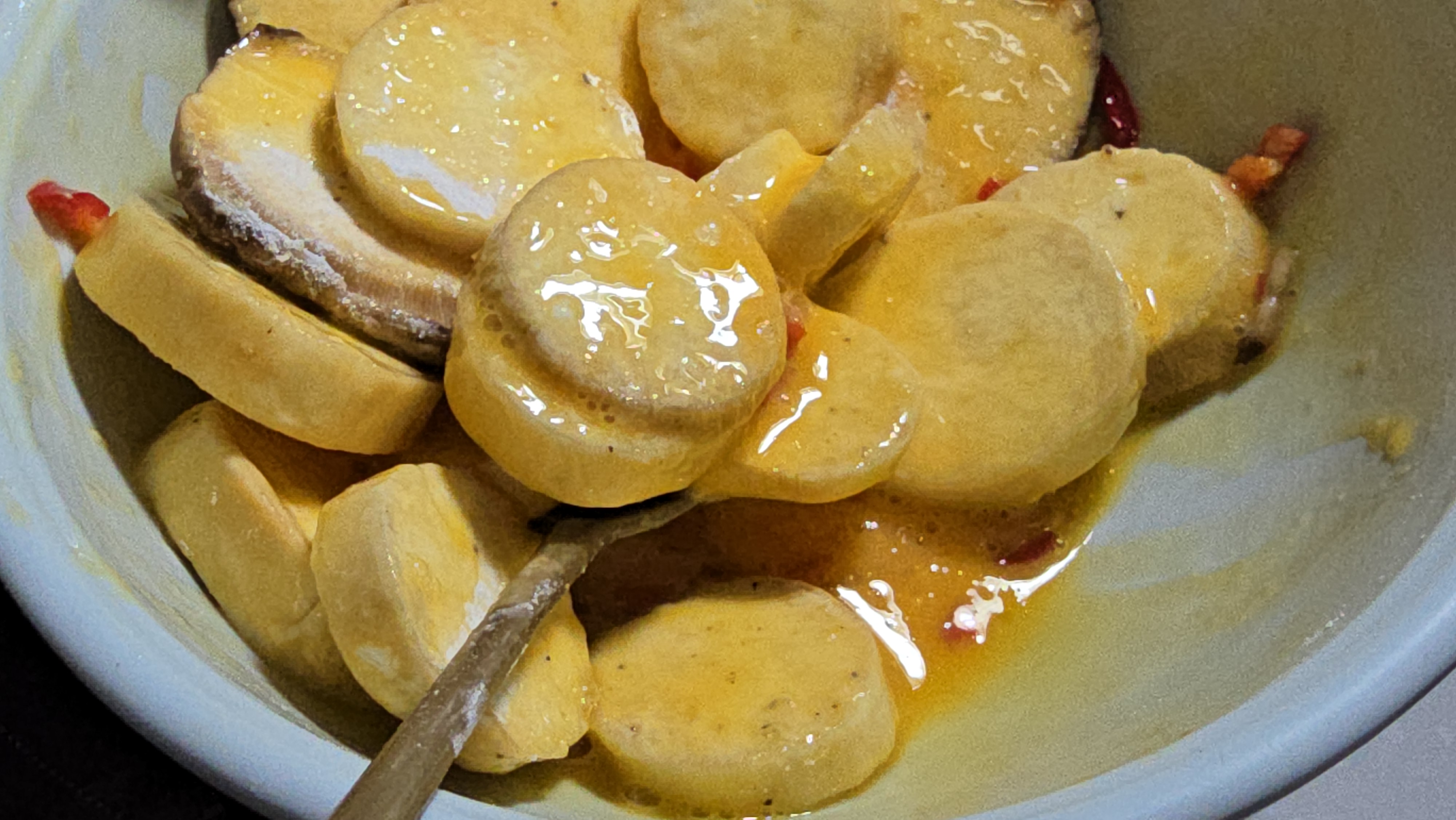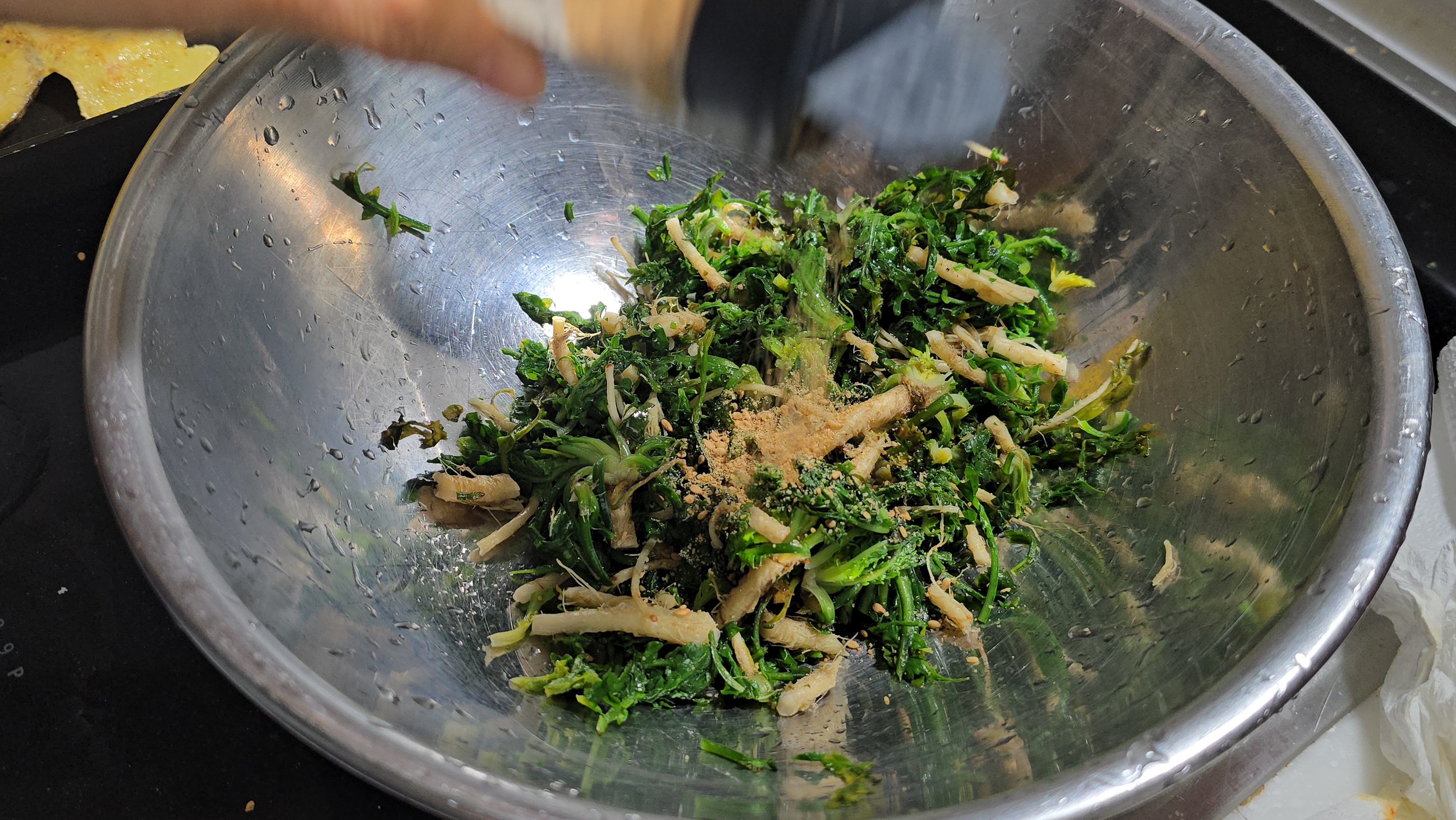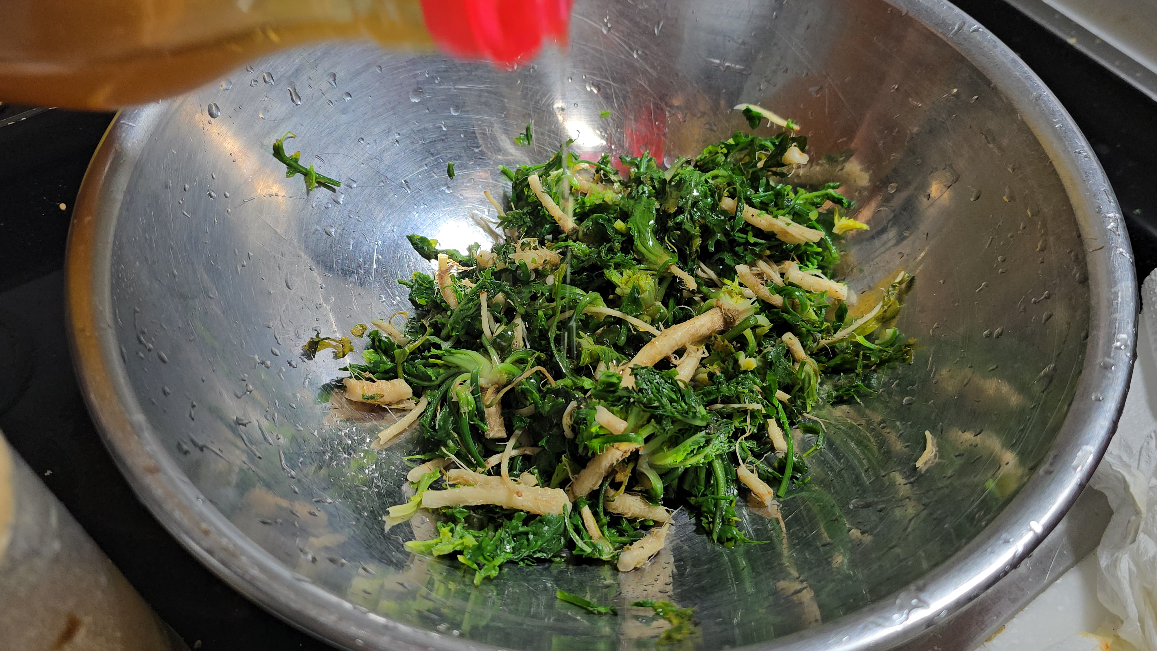 → Toss with anchovy fish sauce, sesame oil, and minced garlic.