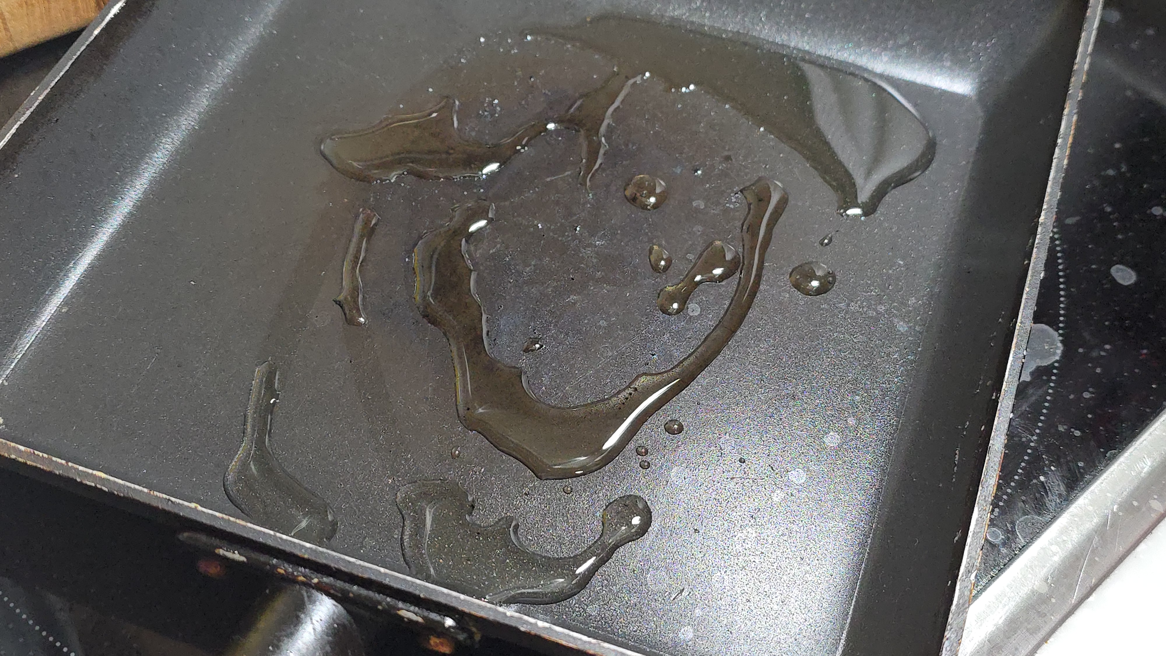 ㉤ 팬에 식용유를 두르고 달걀옷을 입혀 올린다.