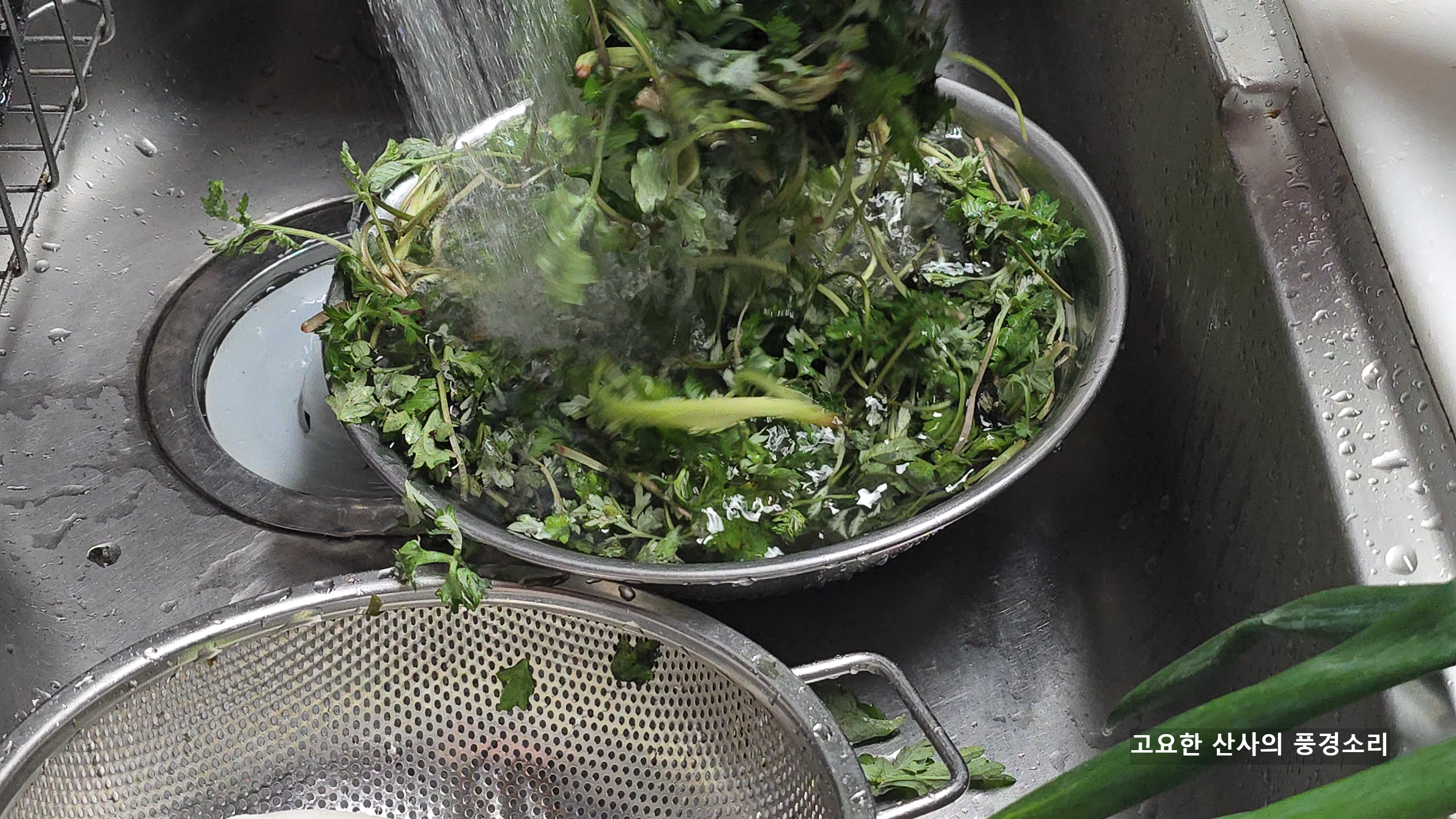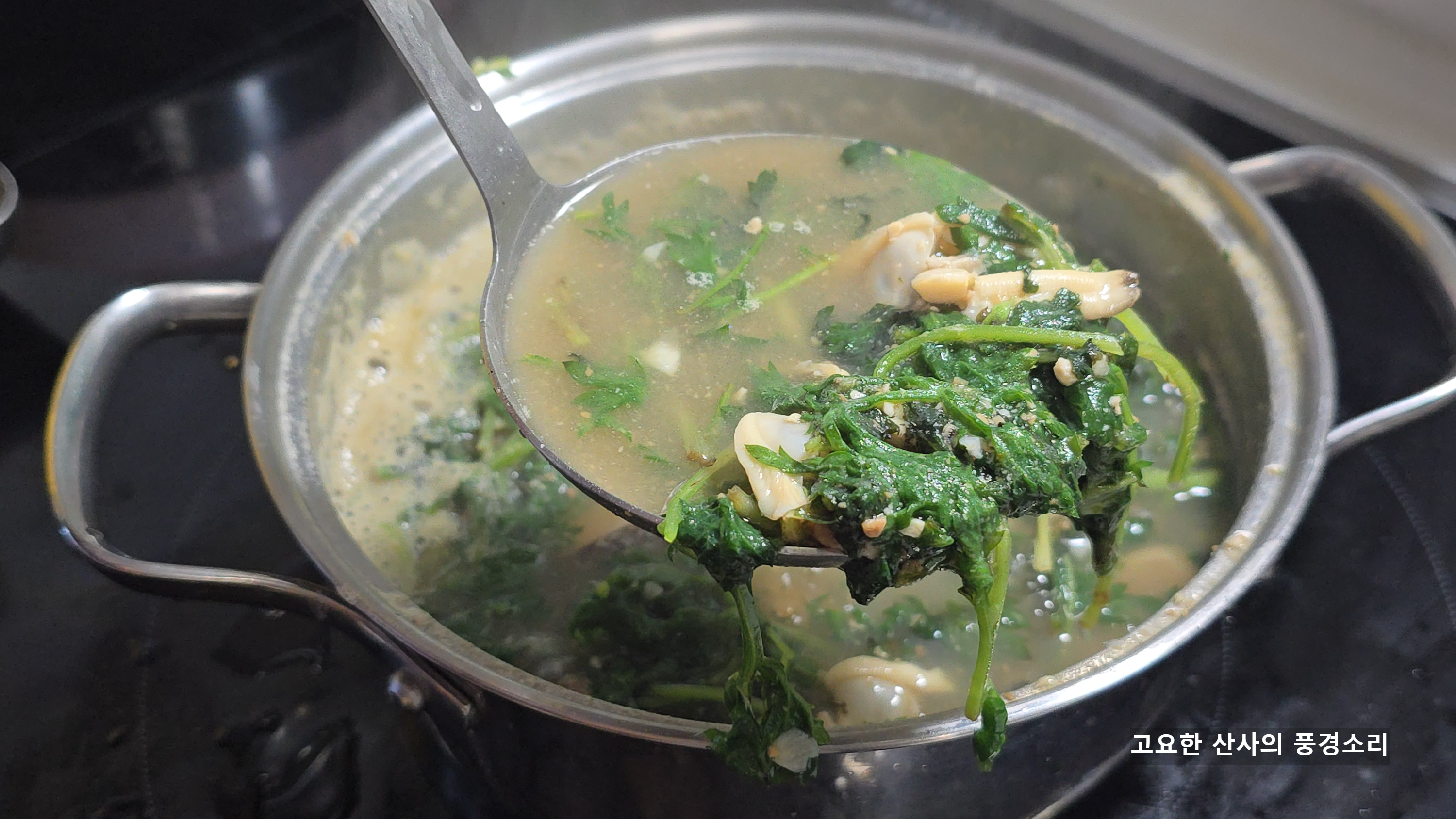 ㉤ 먹기 직전에 쑥을 넣어 향과 색을 살린다.