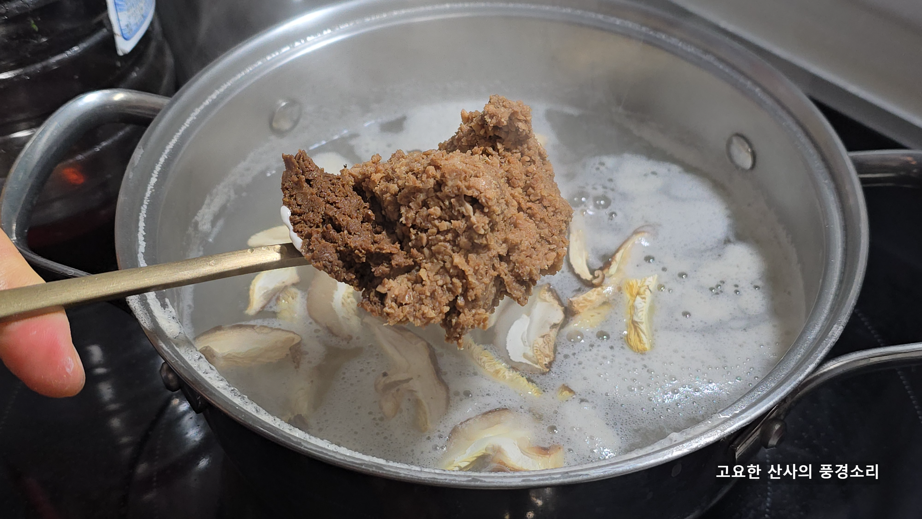 ㉡ 마른 표고버섯을 넣어 끓여준다.