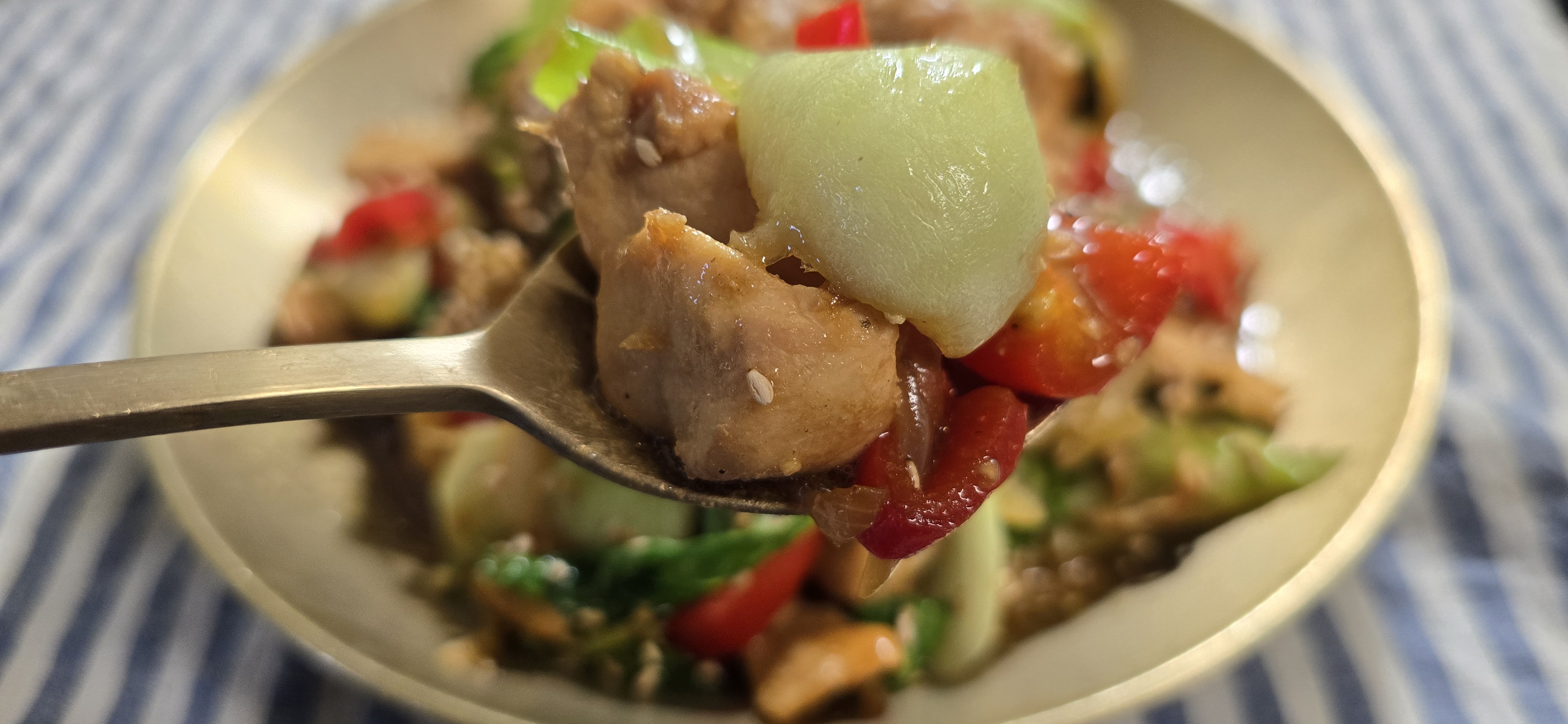 부드러운 닭다리살과 아삭한 청경채를 활용한 볶음요리는 어떠신가요?