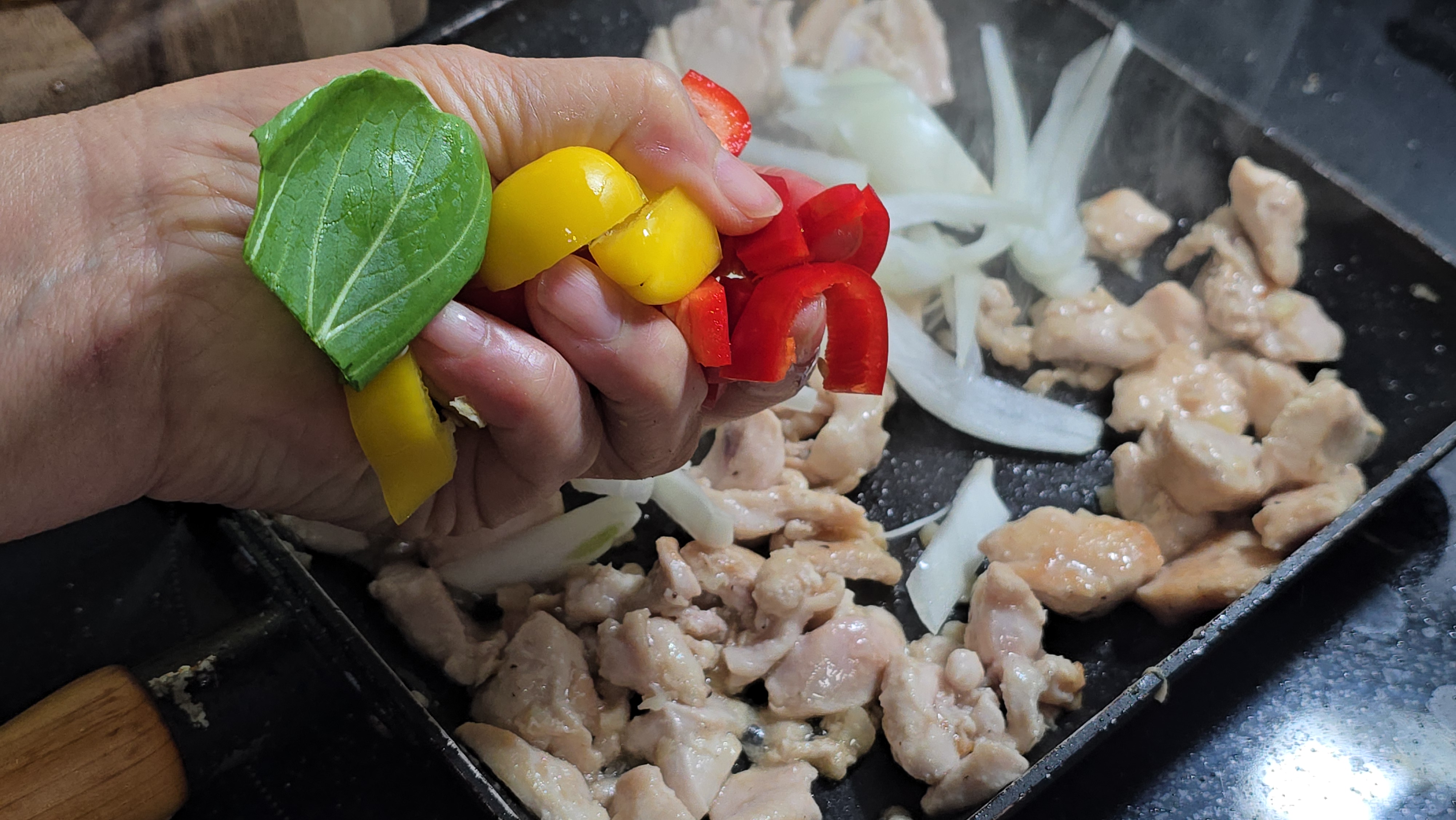 ㉣ 양파, 파프리카, 청경채 줄기를 먼저 넣어준다.