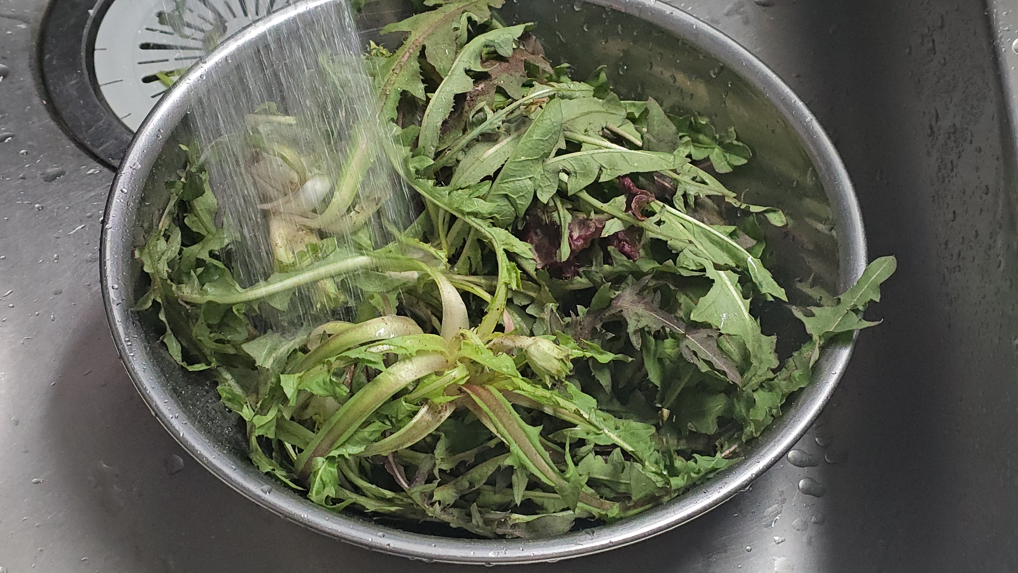 ㉨ 가운데 무쳐둔 민들레를 담아준다.