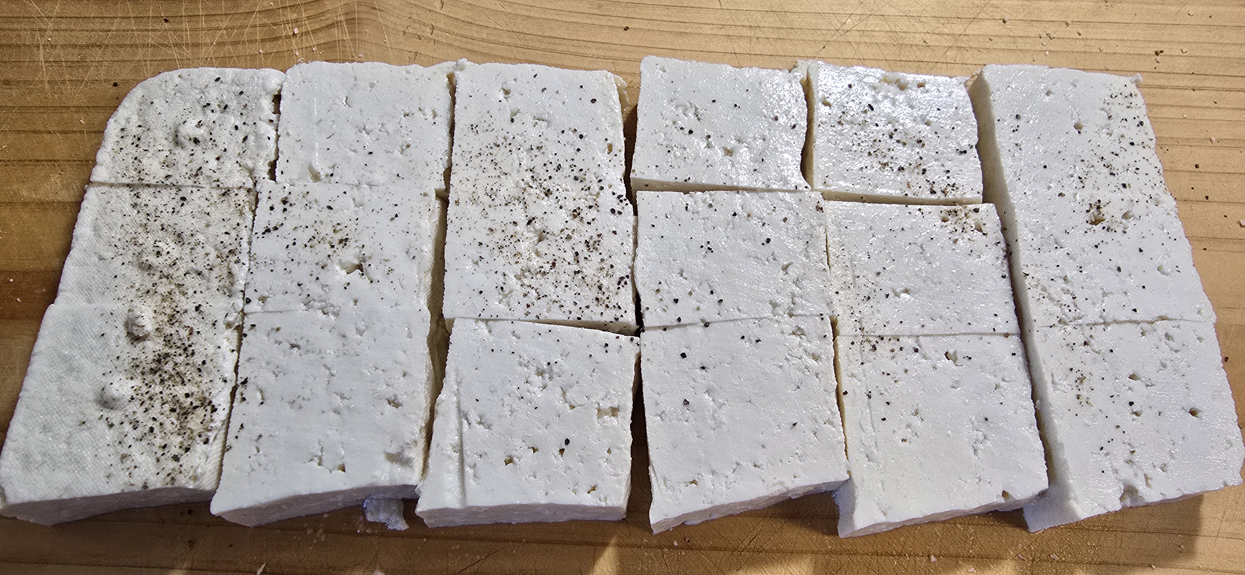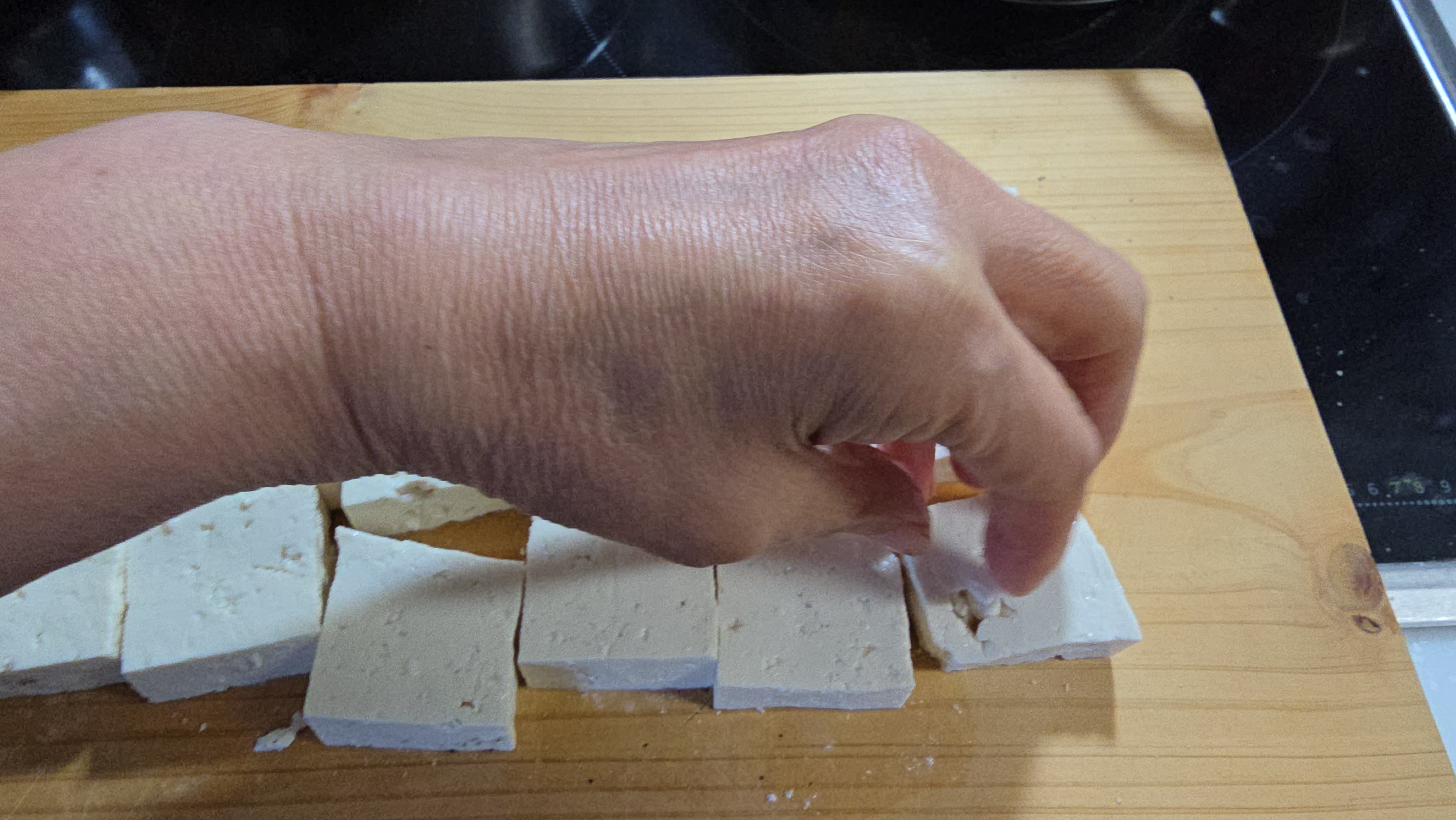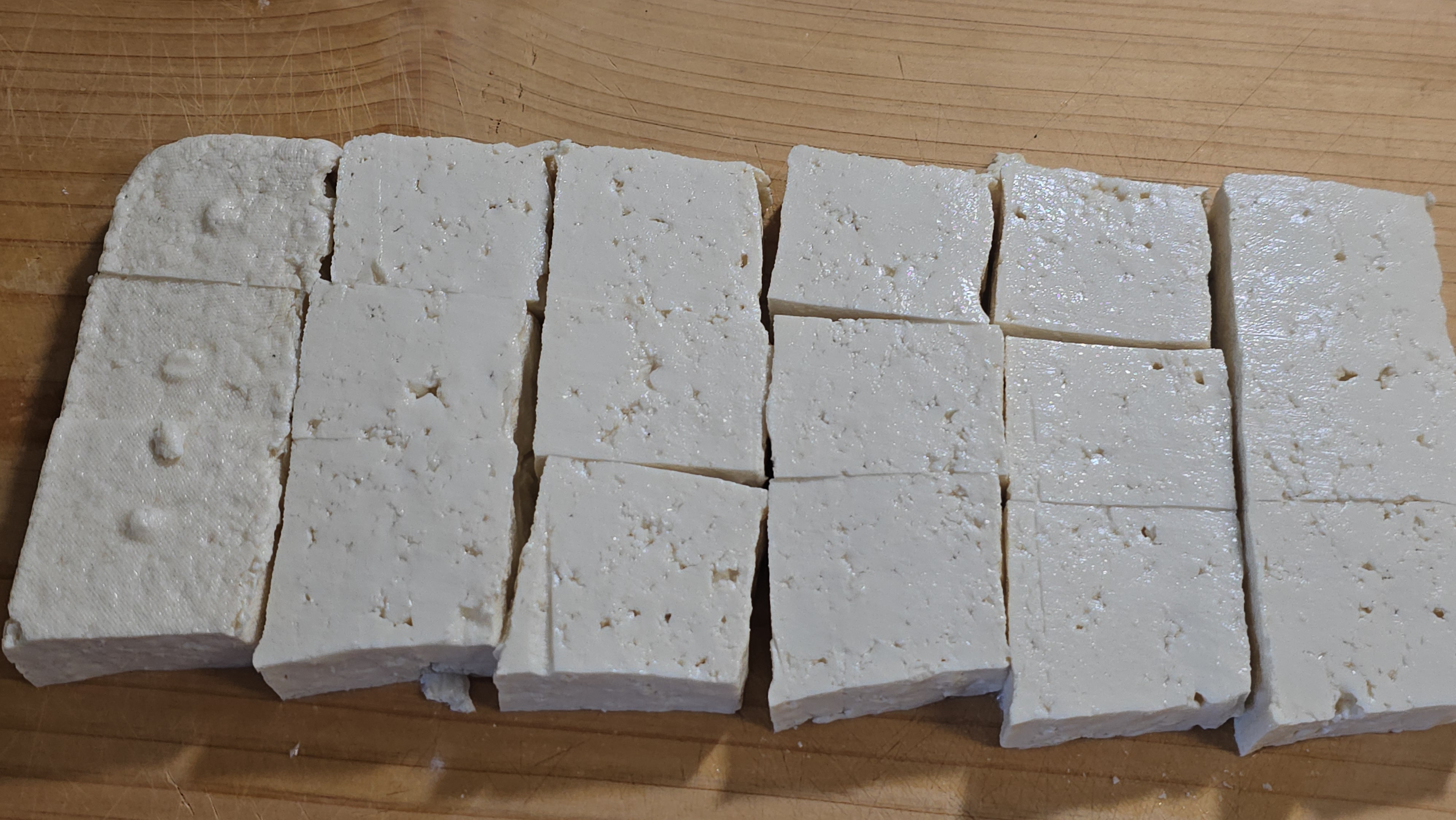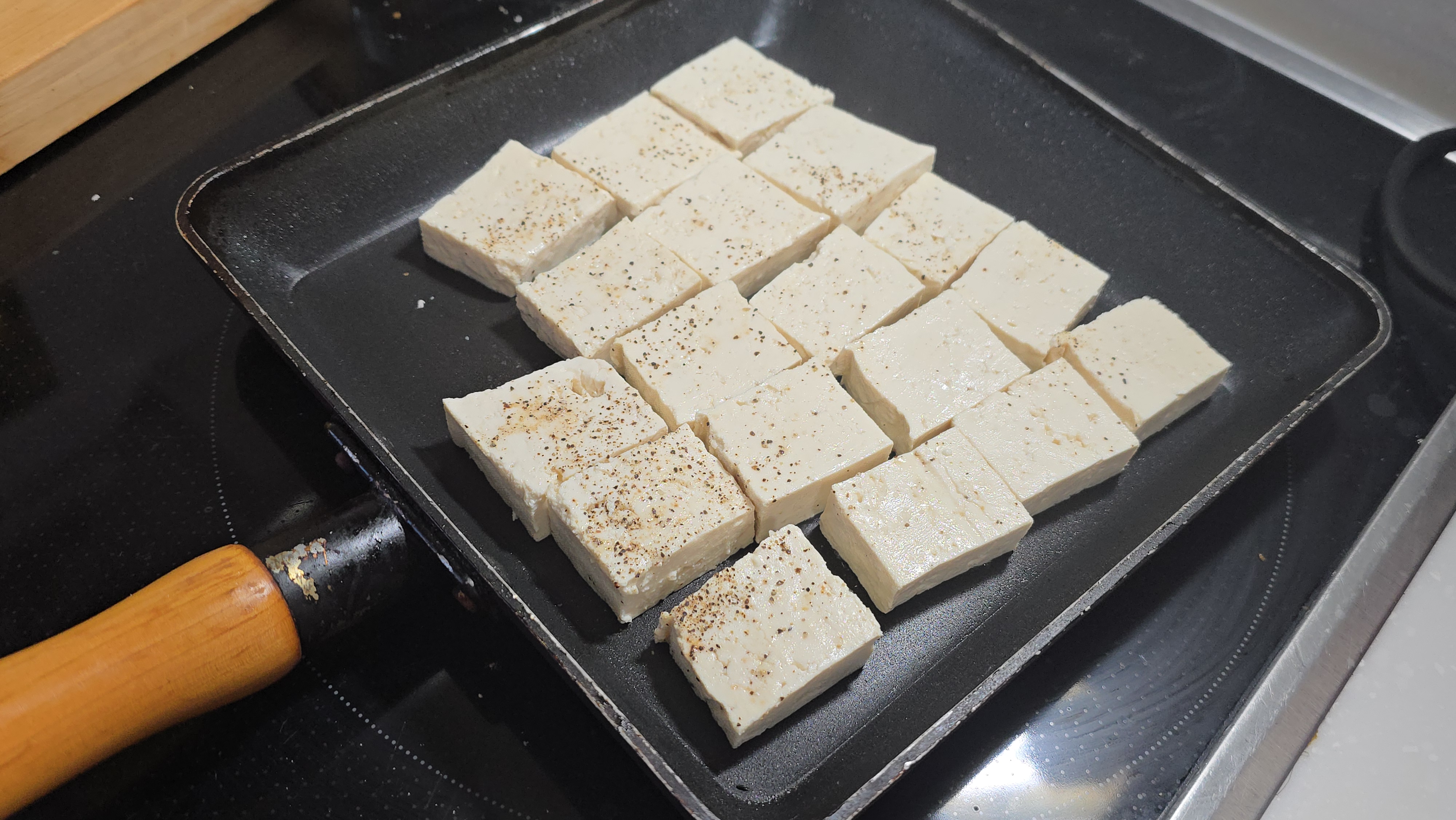 (Remove moisture from tofu and cut into bite-sized pieces)