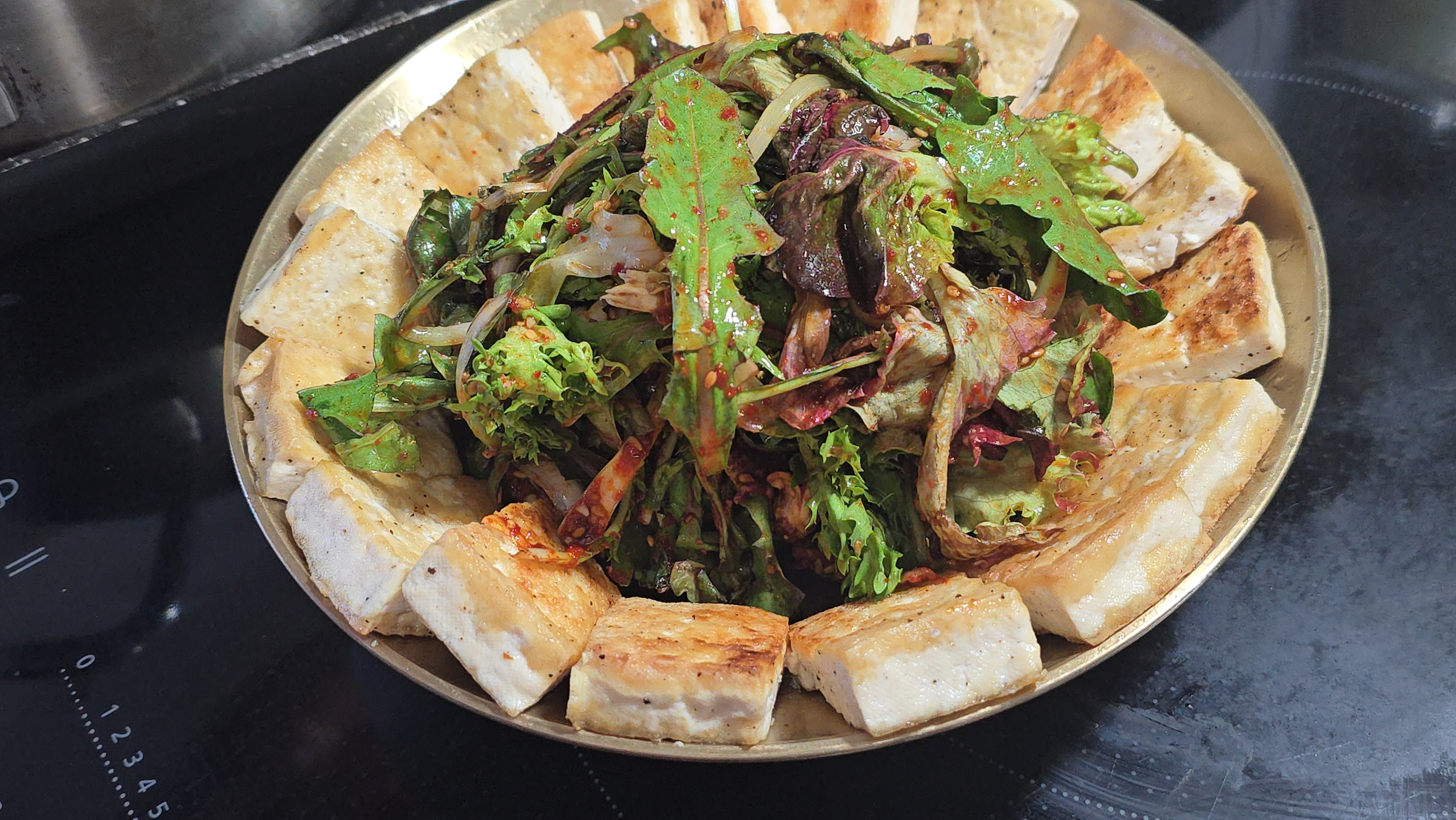 쌉싸름한 민들레와 고소한 두부의 조합은